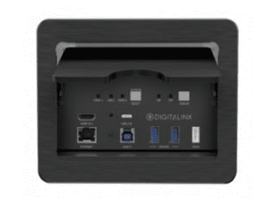 The DigitaLinx DL-SC31U-BX is a 3×1 multi format A/V and USB conference auto switcher and table pocket that supports video resolutions up to 4K@60Hz 4:4:4 8bit deep color and has a built in 4 port USB 3.x hub for integration of USB devices such as USB cameras and microphones that can switched between three USB (PC) hosts. The switcher features three video inputs; (2) HDMI and (1) USB-C. The USB-C input supports video, data (USB host) and power charging up to 40w. The 4 port USB device hub (2 top and 2 bottom) can switch between the USB (PC) hosts automatically or can be assigned to follow a video input in auto switching mode so when the video input is triggered the corresponding USB host will switch as well.